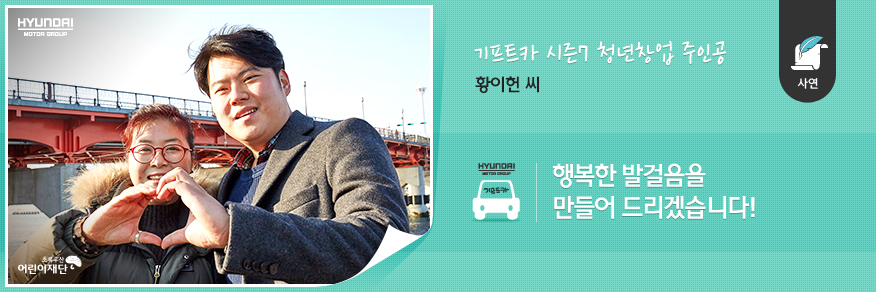 "딜리버리 서비스를 포기할 때쯤, TV에서 기프트카 CF를 봤어요. 기프트카 CF 주인공이 마침 저와 같은 부산에 사는 분이었는데 기프트카를 타고 제가 매일 지나다니는 영도다리를 지나는 모습을 보니 '저 주인공이 내가 됐으면 좋겠다.'라는 생각이 들었고, 기프트카를 신청하게 되었죠."