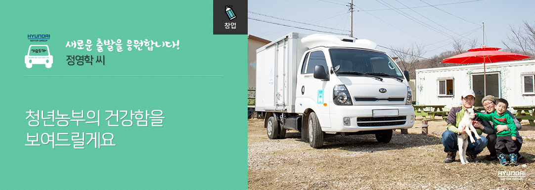 정영학 씨에게 기프트카는 건강한 도전의 시작입니다. 신선한 산양유를 배달해줄 최고의 도우미, 가족들의 웃음을 지켜줄 고마운 선물, 그리고 잠시 멈춰있던 시간을 움직여줄 엔진이 되어줄 테니까요. 이제부터가 본격적인 시작이라고 말하는 그의 이야기를 들어봅니다.