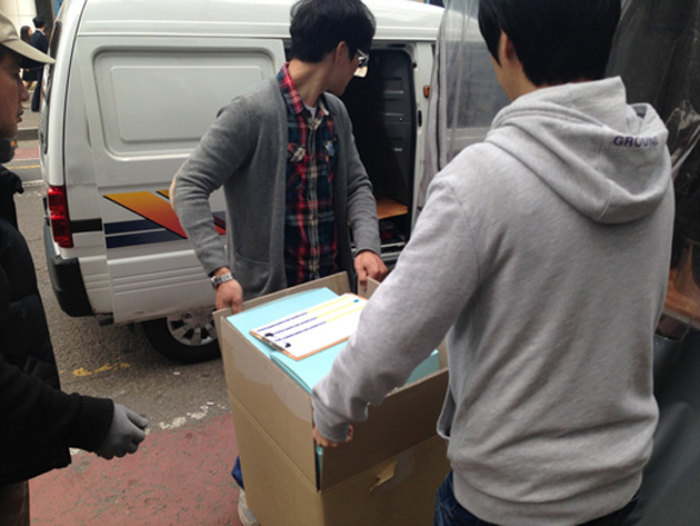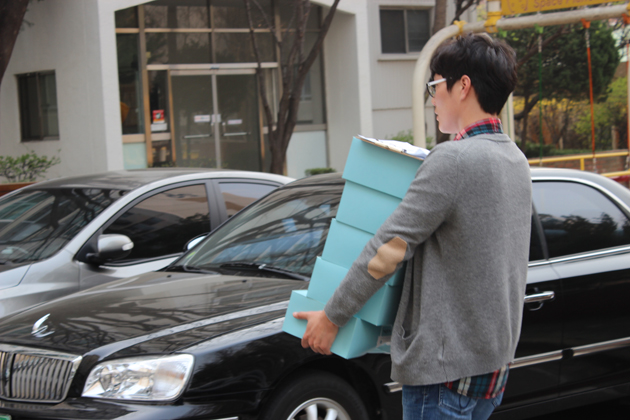 포장을 마무리 할 때쯤 우리 운영스텝 한 명과 김태경씨가 포장된 소보로빵 상자를 나란히 들고