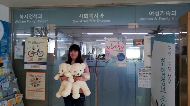 현재 서초구 내에는 5개의 지역아동센터가 있는데요, 저는 해당 아동센터의 초등학교 저학년 여자 아이들에게 곧 있을 어린이날 선물로 오늘 주신 강유진 씨의 곰인형을 전해주려고 합니다.