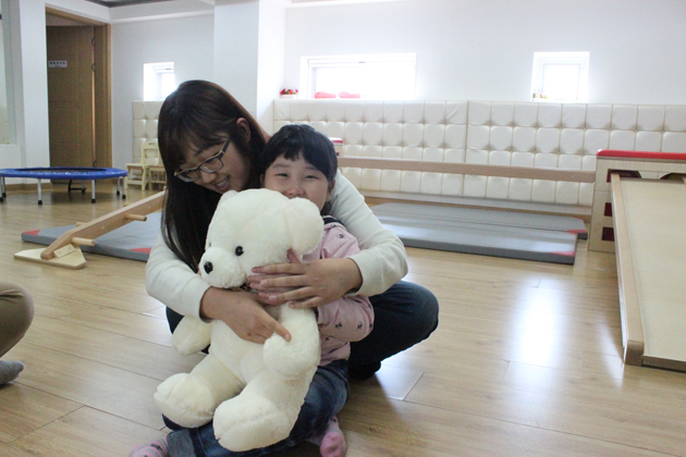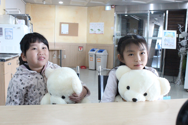 두 번째로 만난 친구는 다연이입니다. 다연이는 형백이와 다르게 낯선 사람들이 많아서 그런지 눈물을 보이더라구요. 선생님들이 달래도 눈물을 쉽게 그치지 않아 걱정되었는데 그 걱정도 잠시! 인형을 전달해 주니 서서히 눈물을 그치더라구요.^^