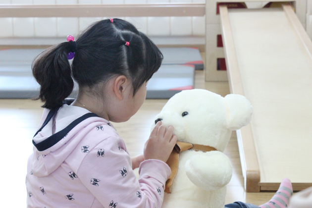연서 어머님과 인터뷰 중에도 연서는 곰 인형에게서 시선을 떼지 못했습니다. 인형과 좋은 친구가 된 것 같아 내심 기분이 뿌듯했습니다.