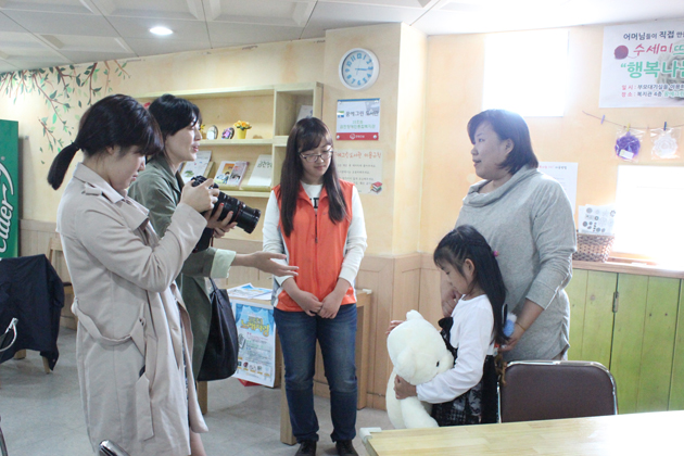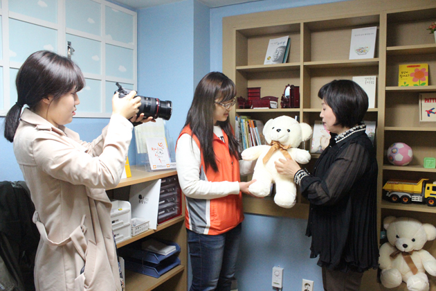 서로 인사를 주고 받은 후 촬영 및 취재에 대해 간략하게 설명을 드리고 오후 2시쯤 바로 촬영을 시작했습니다. 첫 번째로 아이들에게 인형을 전달하기 전 복지관 1층에 있는 상담실에서 강유진 님과 손단비 님의 인터뷰 촬영부터 진행했습니다.