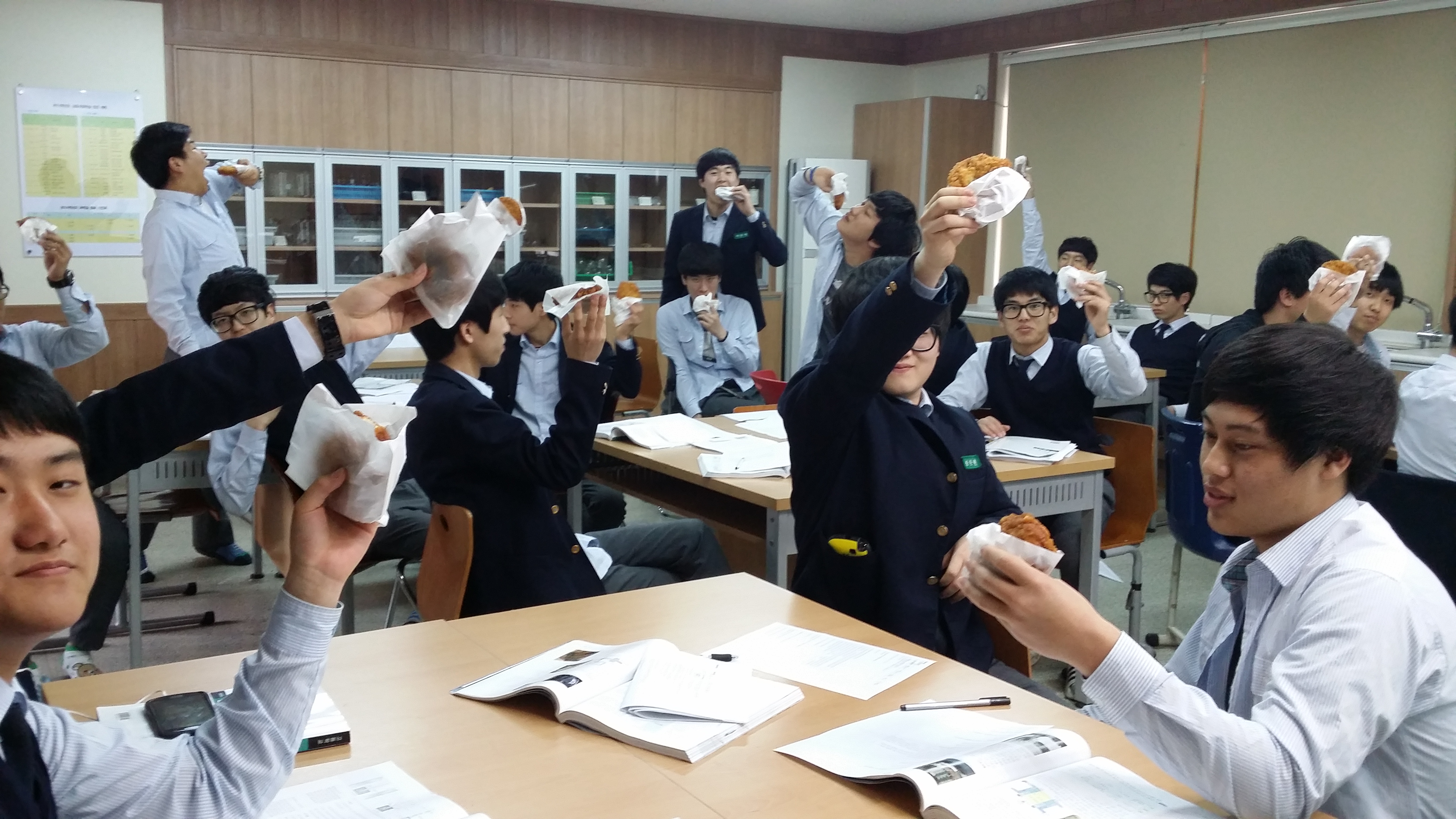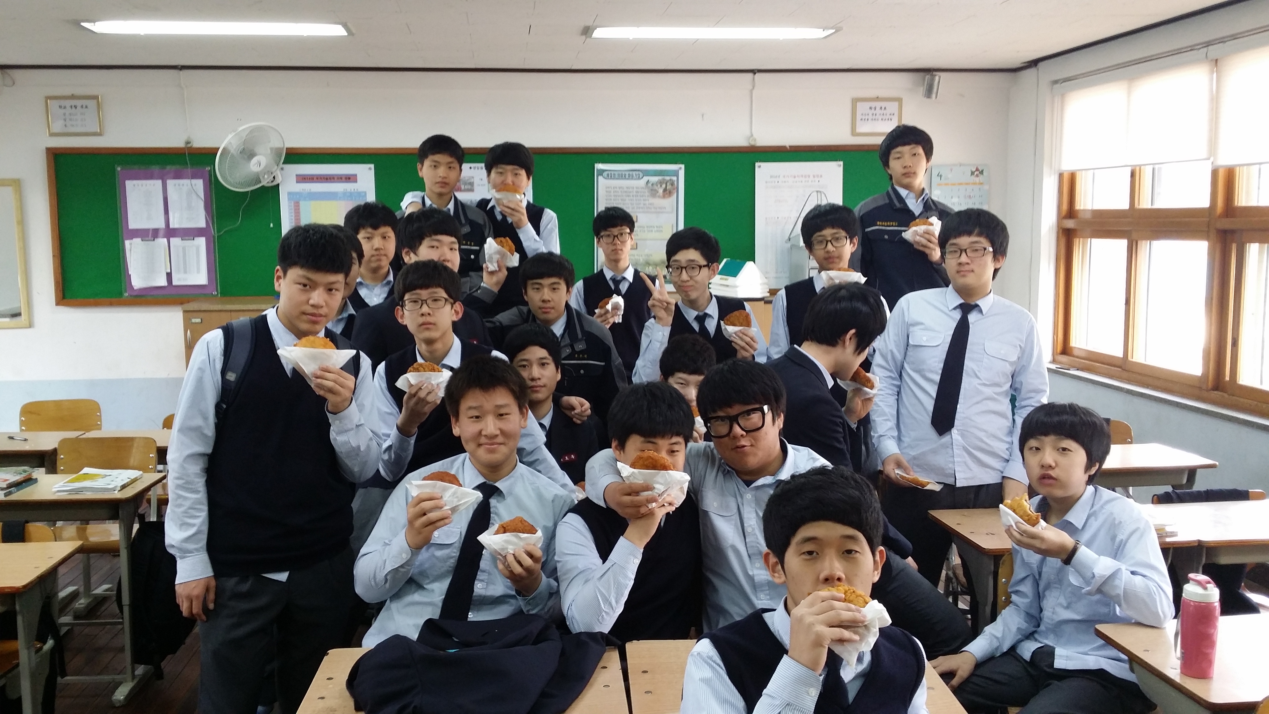 보내주신 김태경씨의 튀김 소보로빵 15상자를 잘 받아서 전교학생 및 교직원들과 나눠 먹었습니다. 감사합니다. 학생들에게 또 하나의 추억거리가 생긴 것 같습니다.