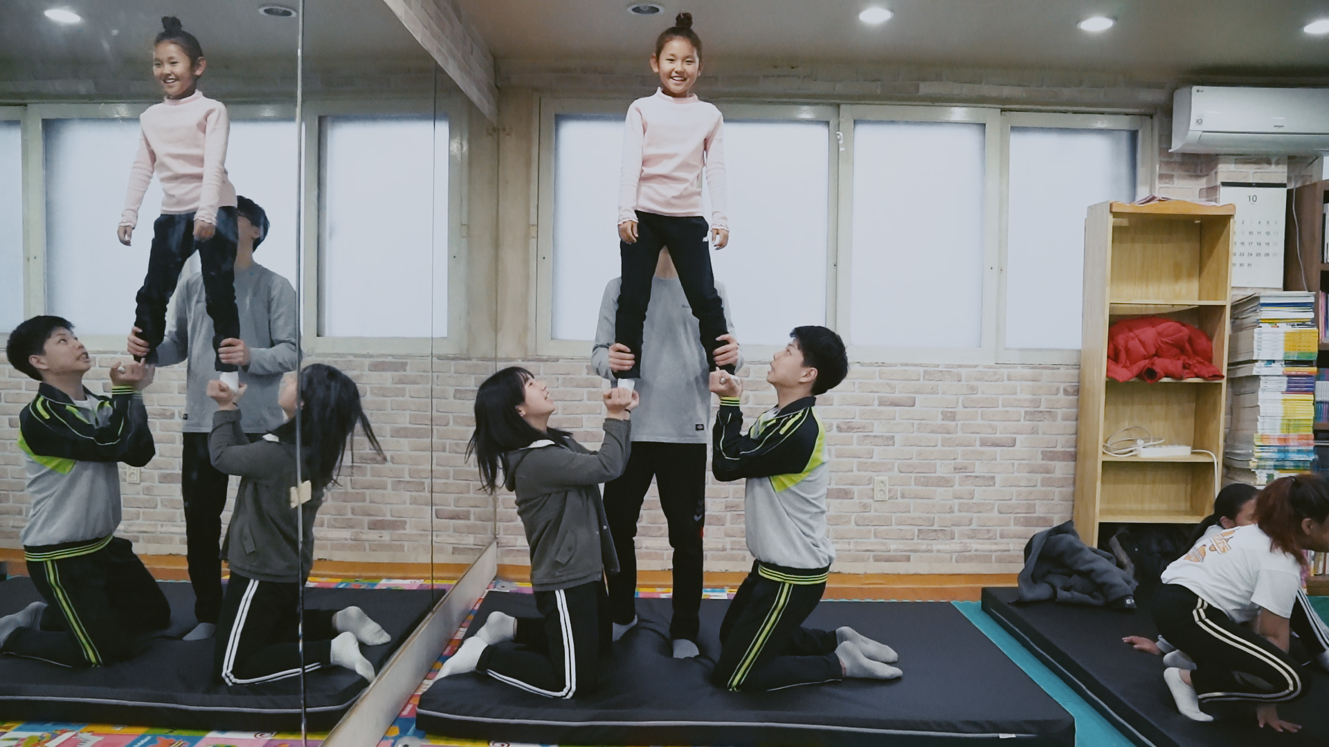 치어리딩의 기본 동작은 물론 대회 준비를 위해 스스로 각본을 짜서 연습하던 아이들.