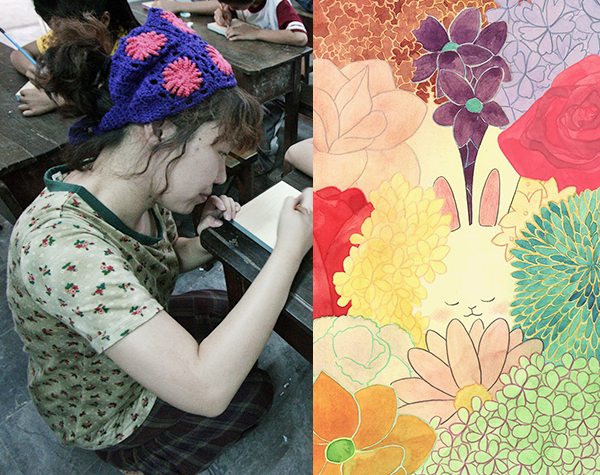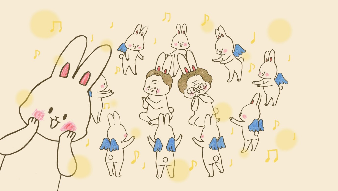 들리지 않는 자신을 대신해 좋은 소리를 많이 들으라고 귀가 큰 토끼 베니를 그려 사랑받고 있는 구작가.