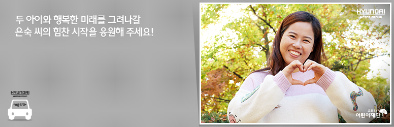 "아이들이 초등학교 4학년, 3학년인데 엄마를 많이 도와줘요. 쌀도 씻어주고, 스스로 밥도 잘 차려먹어요. 지금은 아이들이 건강한 것 하나만으로도 너무 감사합니다. 앞으로도 우리 세 식구가 건강하고 행복하게 지냈으면 하는 마음뿐이에요."