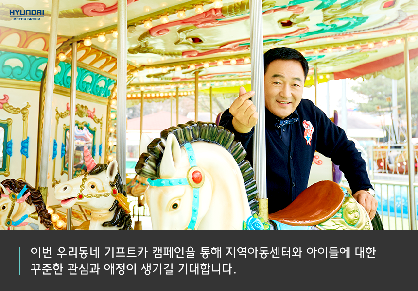 "우리동네 기프트카 캠페인은 지역 사회의 관심이 필요한 아이들에게 방과 후 돌봄, 교육지원 서비스 등을 제공하는 지역아동센터에 차량을 지원하는 사업입니다. 현대자동차그룹은 각 지역센터만의 감동적인 이야기를 발굴, 소개하고 차량까지 지원할 계획입니다. 나아가 이번 캠페인을 통해 아동 복지에 대한 관심을 높이는 데 힘을 보태고자 합니다."