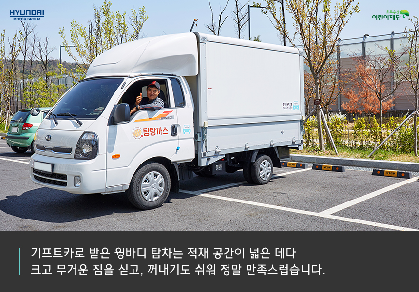 아파트 장터에서 영업하려면 필요한 장비가 무척 많습니다. 식자재는 물론이고 천막, 테이블, 의자, 튀김기, 조리도구, 미니 냉장고 등 각종 물품을 운반해야 하죠. 윙바디 탑차는 적재공간 걱정 없이 맘껏 실을 수 있어 만족스럽습니다. 게다가 적재함 측면부터 지붕까지 완전 개폐가 가능해 짐을 싣고 꺼내기가 쉽습니다. 주변 동료들이 가장 부러워하는 기능이죠. (웃음) 많은 짐을 실을 수 있는 데다 편리하기까지 하니 윙바디 탑차야말로 제게 최고의 차량입니다.