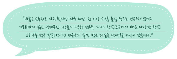 기프트카를 기다리며 정숙 씨는 요즘 과일 산지를 확보하는 데 공을 들이고 있습니다. 사과, 배, 복숭아, 감 등 과일 외에도 김장철엔 절인 배추와 무, 명절에는 제수용품을 판매해 아이템을 다양화할 계획을 세웠는데요. 배추와 무를 제외하고는 모든 물품의 산지와 계약을 마친 상황입니다. 직접 발로 뛰며 수많은 시행착오를 겪어온 그녀에게 기프트카 창업교육이 든든한 힘이 되어주고 있습니다. 창업교육에서 배웠던 고객관리 방법 외에도 시즌2 주인공 박정수 씨에게 생생한 판매 노하우를 직접 전수받으며 성공에 대한 자신감을 더욱 높일 수 있었다고 하네요.