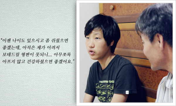어릴 적 공부를 마저 하지 못한 것이 한으로 남은 아버지 유명복 씨. 하지만 어려워진 환경 탓에 아이들의 학업에 큰 도움을 주지 못한 것이 마음에 걸립니다. 특히 첫째 환별이가 대학에 합격했을 때, 접수 마감날까지 그 사실을 알지 못했고 또 도와주지 못해 못난 아버지가 된 것 같아 지금도 미안하다고 말하며 그는 끝내 눈물을 보이고 말았습니다.