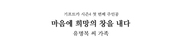 유명복 씨가 지치고 힘들 때, 마음으로 울며 부르던 아빠의 청춘. 그 노래의 가사처럼, 유명복 씨의 삶의 원동력은 아들 딸을 잘 키우고 싶은 간절한 마음이었습니다. 기프트카의 주인공이 된 지금, 유명복 씨의 청춘은 이제부터 시작입니다. 긴 어둠의 터널을 뚫고 이제 달려가야 할 목표를 되찾았으니까요.