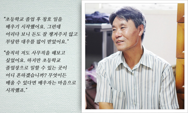 물론 간절한 마음도 한 몫 했지만, 제대로 된 보수를 받지 못하는 상황에서 유명복 씨가 버틸 수 있었던 가장 큰 이유는 바로 '재미'가 있었기 때문입니다. 창호 일이 자신에게 잘 맞았던 것이죠. 그렇게 기술을 하나 둘 자신의 것으로 만든 유명복 씨는 서른이 갓 넘은 나이에 소자본으로 첫 번째 창업을 하기에 이릅니다.