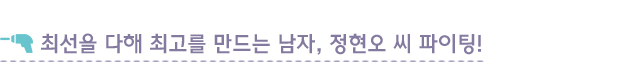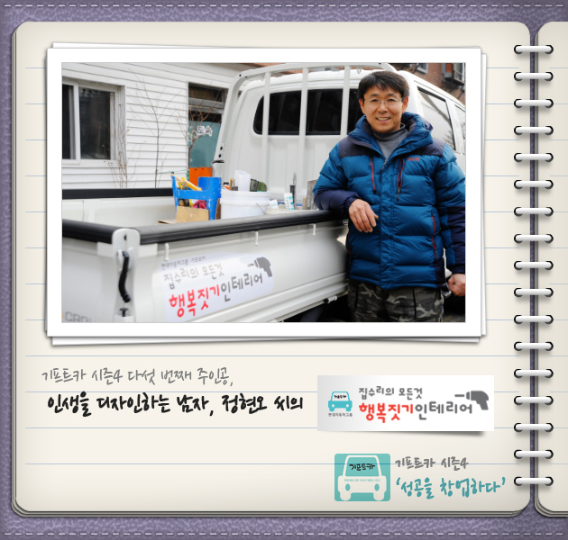 아내를 먼저 떠나 보낸 후 시작한 인테리어사업은 어느새 정현오 씨에게 그 어떤 일보다 소중한 것이 되었다고 하는데요. 이제는 아이들과 함께 기프트카를 타고 더 나은 미래를 향해 달려가고 싶다 말합니다. 행복을 짓는 인테리어 사업가로, 미래를 세우는 한 가정의 가장으로 살아가기 위해 뒤돌아보지 않고 앞만 보며 달리겠다는 정현오 씨. 위풍당당하게 파이팅을 외치는 모습이 정말 보기 좋습니다.