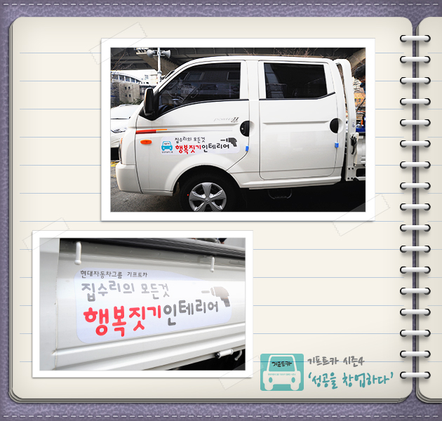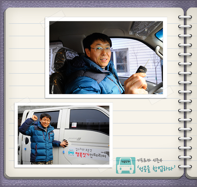 정현오 씨: 사실은 주차장에 고이 세워놓고 몇 번 못 탔어요. 괜히 잘못했다가 긁힐까 봐 걱정도 되고, 차가 너무 반짝거려서 타기가 너무 아까운 거 있죠? 앞으로 공사하러 다니게 되면 짐을 많이 싣게 될 텐데, 그때를 대비해 바닥에 철판을 깔아서 기프트카가 상하지 않도록 할 거예요. 정말 조심이 잘 관리할 생각입니다.