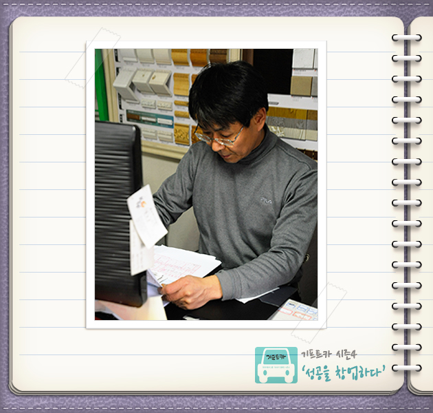 정현오 씨: 2013년 매출 대비 10% 성장이 목표입니다. 경기가 안 좋았는데도 작년 한 해 잘 버텼다고 생각해요. 그래서 올해는 큰 욕심 부리지 않고 작년보다 10%로만 더 벌었으면 좋겠습니다. 기프트카도 생겼으니 새 마음으로 열심히 한다면 올해 목표는 충분히 이룰 수 있을 것 같아요.
