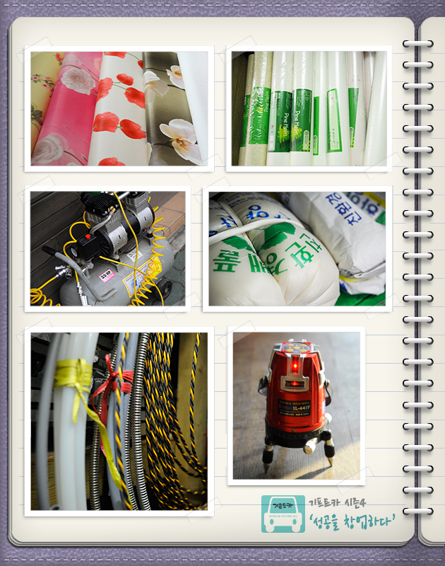 정현오 씨: 이것저것 자재들이 많아졌죠? 도배에 필요한 벽지와 타일 시공에 필요한 장비들을 조금 더 갖췄어요. 타일 작업을 할 때 필요한 수직, 수평을 맞추는 최신 기계도 들여놨습니다. 인테리어는 관련 장비나 자재가 많이 필요해서 생각보다 초기 자본이 많이 들어가는 편이에요. 그래도 이제 토탈 인테리어 사업장다운 구색을 갖춰가고 있는 것 같아 뿌듯하네요.