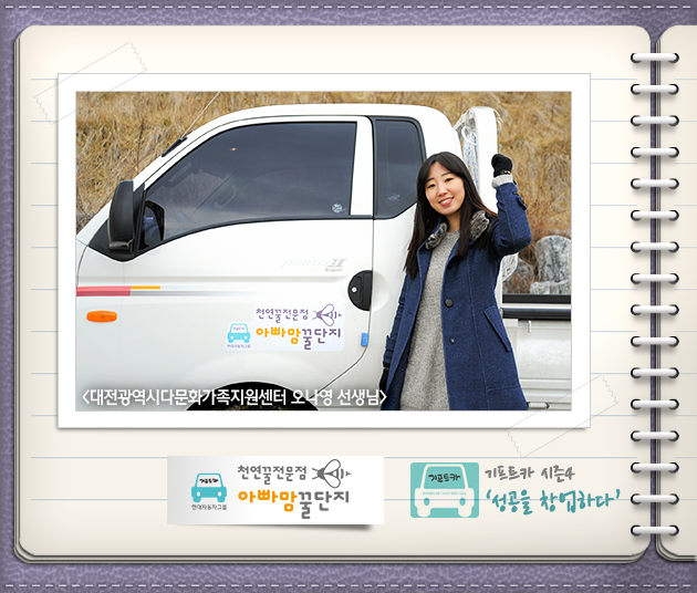 양봉 일에 대한 열정과 충분한 역량이 있었지만, 자본이 너무나 부족해 고민하고 있던 전용환 씨에게 대전광역시다문화가족지원센터 오나영 선생님은 가만히 기프트카 신청서를 내밀었습니다. 안 되어도 좋으니 일단 한번 도전해보자는 것이었습니다. 오나영 선생님은 아직 한국어에 서툰 아내분과 쌍둥이 아이들을 위해서라도 전용환 씨에게 잘 맞는 일을 찾아주고 싶었다고 합니다. 이제 기프트카 주인공이 되어 차근차근 양봉 사업을 준비 중인 전용환 씨를 응원하기 위해 찾아온 오나영 선생님을 만나보았습니다.