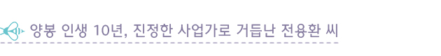 전용환 씨: 제 양봉 사업의 주인은 고객이라는 거예요. 사실 제가 진짜 꿀을 병에 담는 모습을 직접 보여드리기 전까진 고객을 만들기가 쉽지 않거든요. 그래서 고객과의 신뢰관계가 형성되지 않으면 좋은 매출을 기대하기가 어렵죠. 하지만 제 단골손님이 되신다면 '정직, 신용, 성실'을 바탕으로 한 진짜 꿀을 맛보실 수 있을 거예요.
