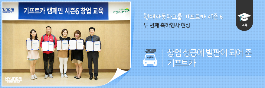 구름 한 점 없이 맑았던 9월 어느 날. 어두운 그림 한 점 없길 바라는 이들이 한자리에 모였습니다. 티 없이 맑고 환한 표정을 띤 기프트카 주인공들의 모습에 창업교육 수료식 축하행사 분위기는 긍정의 기운이 가득했습니다. 새로운 출발을 다짐한 축하행사 현장을 소개합니다!
