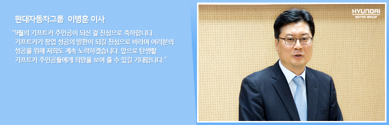 “기프트카 덕분에 잊고 살았던 희망의 꿈을 되찾았습니다. 발로 뛰며 열심히 살아가는 모습 보여드릴게요. 많은 사람에게 기프트카를 알리는 사람이 되기 위해 반드시 성공하겠습니다.”