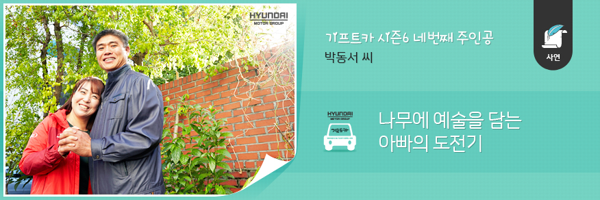 남들보다 거칠고 투박한 손이지만, 동서 씨의 손을 거치면 평범한 나무조각도 예술작품으로 다시 태어납니다. 한때 불의의 사고로 가시투성이가 되어버린 삶이었지만 기프트카를 만나고 새롭게 자신의 삶을 다듬기로 한 동서 씨를 지금 만나보겠습니다.