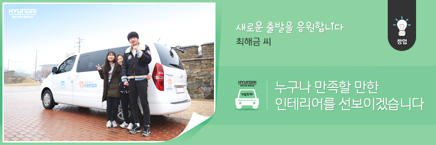 기프트카를 통해 기동성을 확보한 해금 씨는 관공서 주관 인테리어 시공사업 입찰은 물론 강화 주변 섬들에서까지 새로운 가능성을 엿보았습니다. 나아가 도배 자격증 취득과정을 함께했던 동료들이 터를 잡고 있는 인천 지역까지 사업 반경을 넓혀보려고 한다는데요. 이렇듯 다방면으로 새로운 도전을 꿈꿀 수 있게 된 건, 네 바퀴로 어디로든 데려다 주는 든든한 기프트카 덕분입니다.