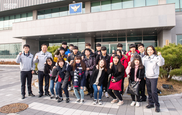 기프트카 셰어링 캠페인의 도움으로 관내를 벗어나 다른 지역까지 무사히 현장견학을 마칠 수 있었다는 안양만안경찰서 여성청소년계 경찰관들. 단 하루 진행된 짧은 견학이지만, 경찰 동아리 학생들에게 이날 하루는 잊지 못할 추억이 되었습니다. 견학이 끝나고 기프트카 캠페인 신청자인 박종선 경장과 안양고등학교 경찰 동아리 회장 윤정 학생에게 소감을 들어보았습니다.