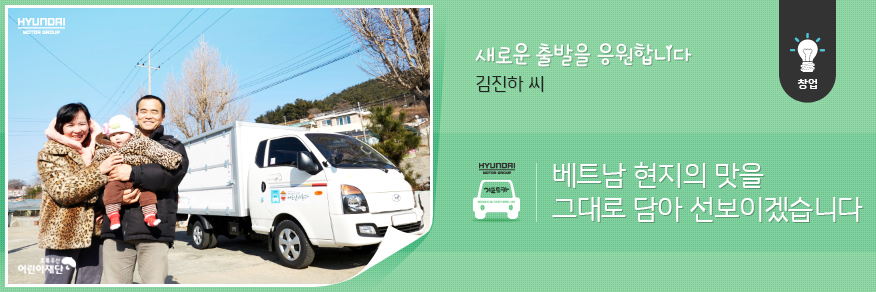 시련은 있지만, 실패는 없습니다. 수많은 고난의 순간 속에서도 끝내 해내리란 믿음을 잃지 않았던 김진하 씨. 그 믿음이 열매를 맺어 기프트카로 찾아왔습니다. 기프트카와 함께 베트남 현지의 맛을 그대로 전하겠다는 진하 씨의 이야기를 지금 들어봅니다.
