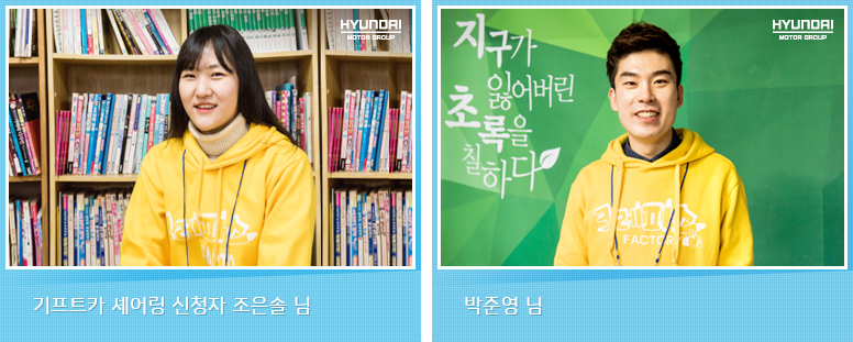 기프트카 덕분에 지구에 초록 색깔 한 방울 물들일 수 있었다는 크레파스 팩토리 회원들. 세상은 이들이 펼쳐갈 초록 세상 덕분에 한층 더 싱그러워질 겁니다. 앞으로도 크레파스 팩토리의 감성 충만한 이야기들에 귀 기울여 들어주세요!