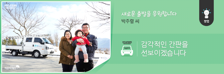 무엇보다 한눈에 제 사업을 알릴 수 있는 디자인이라 마음에 들어요. ‘대박난 간판집’이란 상호가 조금 쑥스럽긴 하지만요. (웃음) 상호처럼 대박 나도록 최선을 다하겠습니다.