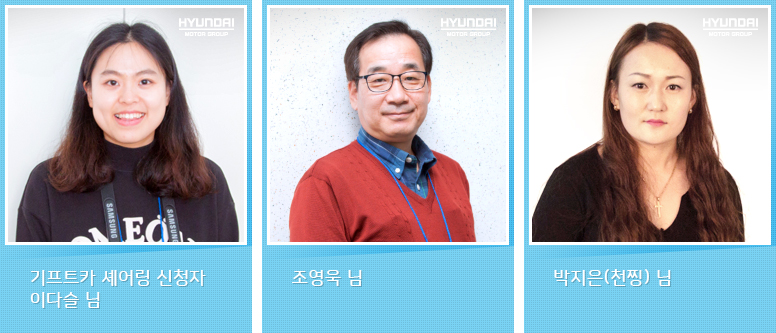 앞으로 소개해드릴 셰어링 주인공들의 이야기에도 많은 관심 부탁 드립니다. 아직 끝나지 않은 기프트카 셰어링 캠페인 마지막까지 함께 해주세요.