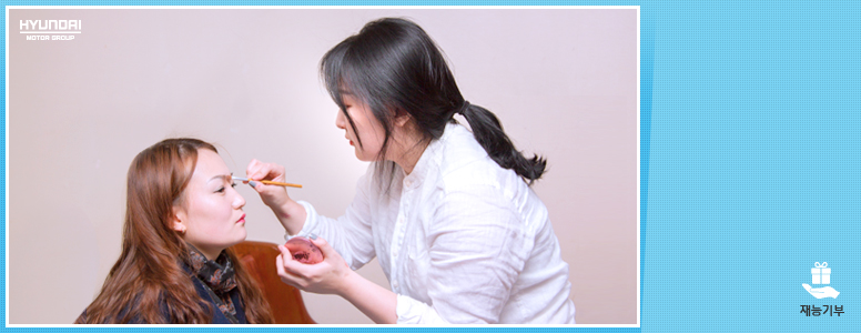 본격적인 가족 사진 촬영에 앞서 화려한 변신을 준비하기 시작했는데요. 평소에는 아내로 엄마로 그리고 며느리로 바쁘게 살아왔기에 꾸밀 시간이 없었지만 오늘만큼은 봉사단원들의 도움을 받아 아름답게 꾸밀 수 있었고, 아빠도 아이들도 사진촬영을 위한 단장을 하였습니다. 메이크업을 마치고 모두가 긴장한 얼굴이 역력한 채로 카메라 앞에 앉은 것도 잠시, 봉사단원들의 밝고 경쾌한 목소리 덕분에 긴장감은 눈 녹듯이 사라지고 입가에 미소를 머금은 예쁜 가족사진을 찍을 수 있었습니다.