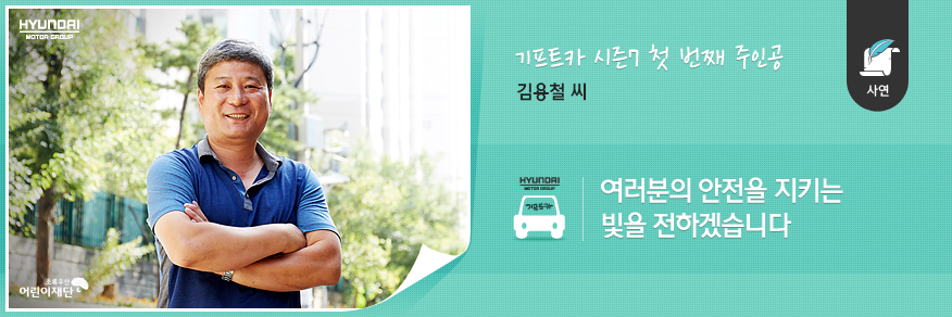 용철 씨는 사업 특성상 대중교통을 이용할 수 없는 밤에 버스 차고지로 이동하여 안전조명을 장착하는 작업을 해야 하는데 그럴 때마다 교통에 불편함을 겪는 직원들에게 미안한 마음이 든다고 합니다. 기프트카로 늦은 밤까지 안전하게 직원들과 작업 할 수 있는 환경을 만드는 것이 용철씨의 또 다른 소망입니다.