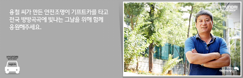 결국 용철 씨는 두 식구의 유일한 생계수단이었던 운전대를 더 이상 잡을 수 없게 됩니다. 그러나 손을 놓고 있기엔 지켜야 할 가족이 있었습니다. 용철 씨는 다시 용기를 내 안전용품 제작업체에 취업했고, 그 곳에서 지금의 안전조명에 대한 아이디어도 얻었습니다. 어두운 터널 같기만 했던 용철 씨 인생에 한 줄기 빛과 같은 아이디어였습니다.