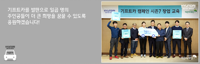 "기프트카의 주인공이 되신 여러분, 진심으로 축하드립니다. 여러분의 성공과 행복은 기프트카 캠페인의 가장 큰 보람입니다. 기프트카를 통해 성공의 발판을 마련하시기를 바라며, 기프트카가 여러분의 성공의 발판이 되어주지만 성공의 보장은 아니기에 언제나 초심을 잃지 않고, 열정을 다해 성공적인 창업을 이루시길 바랍니다."