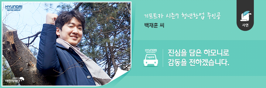 대한민국 최초의 뮤직 트럭을 꿈꾸며 사업 계획을 실행에 옮기기 시작한 재훈 씨. 하지만 사업에 필요한 차량을 마련하는 문제로 고민에 빠졌습니다. 그런 재훈 씨에게 한 지인이 기프트카 캠페인을 추천해주었습니다.