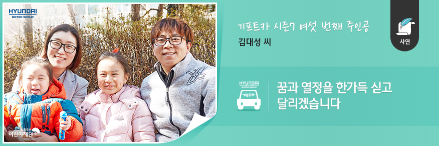 기프트카를 통해 경제적 울타리를 촘촘히 세우고 싶다는 대성 씨. 특유의 성실함과 열정으로 소중한 가정의 든든한 버팀목이 될 대성 씨의 미래를 응원합니다!