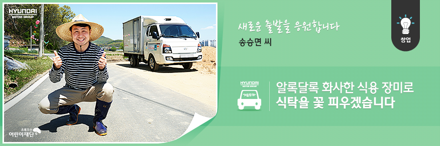 오랫동안 바라던 튼튼한 차량이 생겨 천군만마(千軍萬馬)를 얻은 기분입니다. 사업을 맘껏 펼칠 수 있는 차량이 생기니 '할 수 있다'는 희망과 자신감이 생겼어요. 식용 장미를 찾는 곳이라면 언제 어디든 달려가야겠다는 의욕도 샘솟습니다. 좋은 기회를 잡은 만큼 다시 일어서는 모습 꼭 보여드리겠습니다.