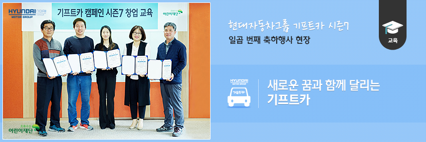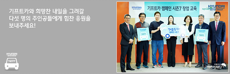 "기프트카 캠페인 시즌7의 주인공이 되신 걸 진심으로 축하드립니다. 2박 3일간의 창업교육을 통해 새롭게 세운 계획을 구체적으로 정리해보시길 바랍니다. 자신감을 갖고 작은 목표를 차근차근 이뤄가다 보면 금세 성공의 궤도에 오르실 거라 믿습니다. 여러분의 삶과 가정에 좋은 일만 가득하도록 응원하겠습니다."