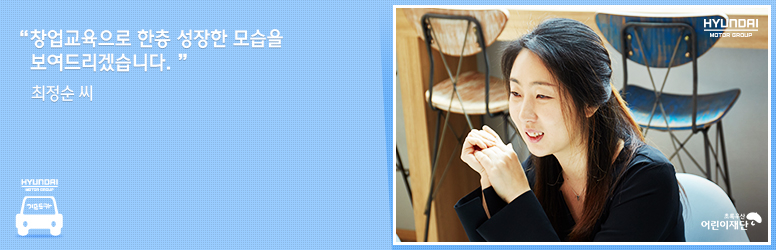 "창업교육을 통해 앞으로의 사업 방향과 판로 개척 계획을 세우는 데 큰 도움을 받았습니다. 교육 내용을 사업 운영에 접목해나갈 생각에 벌써 가슴이 두근두근합니다. 새로운 마음가짐으로 최선을 다해 기프트카 캠페인으로 제2의 인생을 멋지게 그려가도록 하겠습니다."