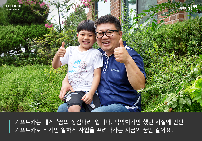 지금의 사업 안정화가 되기까지 기프트카가 없었다면 돌고 돌아 시간이 더 걸렸을 거예요. 성공을 위한 절박함을 가지고 솔직하고 진솔한 제 사연과 전문 클리닝 노하우와 매니저로서의 직원 관리 경험, 향후 예상 매출과 수익까지 꼼꼼하게 담아 기프트카의 문을 두드렸어요. 면접 때도 청소 전문가라는 점을 어필했지요. 기프트카를 맞이했던 감격의 그날, 스타렉스 차량뿐 아니라 ‘실패에 꺾이지 말라’는 격려와 ‘하면 된다’는 자신감까지 함께 선물 받았습니다. 내가 받은 도움을 가깝게는 회사 직원들에게, 멀게는 제가 사는 지역 사회에 나누고 돌려주고 싶다는 생각을 늘 마음에 품으며 살고 있습니다.