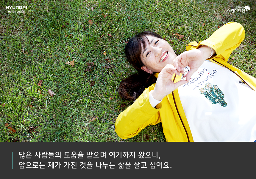 “지금까지 많은 사람들의 도움을 받으며 여기까지 왔으니 앞으로는 제가 가진 것을 나누는 삶을 살고 싶어요.”