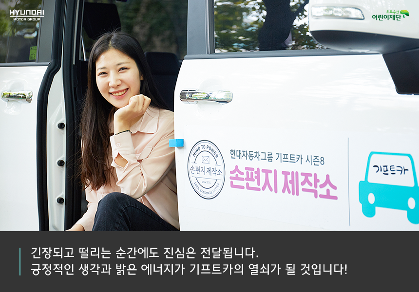 참신하고 독창적인 아이디어가 있는 청년 창업자에게 자동차와 맞춤형 창업을 지원하는 기프트카 캠페인 청년창업! 요즘 TV에서 기프트카의 광고를 만나볼 수가 있는데요, 그 중에서 ‘손편지 제작소 편’의 주인공 조아름 씨를 만나 보았습니다. 청년들이 만드는 새로운 길을 지금 함께 만나 보세요.
