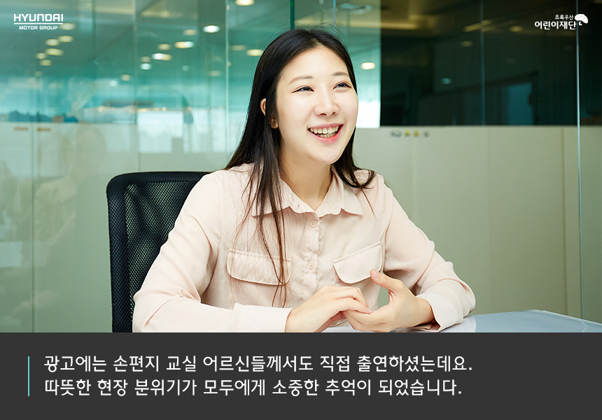 기프트카 캠페인 시즌8 청년창업의 첫 주자라 더 떨리는 것도 있어요. 그리고 광고는 저희 손편지 제작소의 실제 이야기로 만들어졌는데요, 제 이야기를 담는 것이기에 수동적인 모델이 아니라 시나리오, 소품 준비, 촬영, 녹음, 편집 등 광고 제작 전반에 능동적으로 참여하면서 새로운 경험을 할 수 있었습니다.
