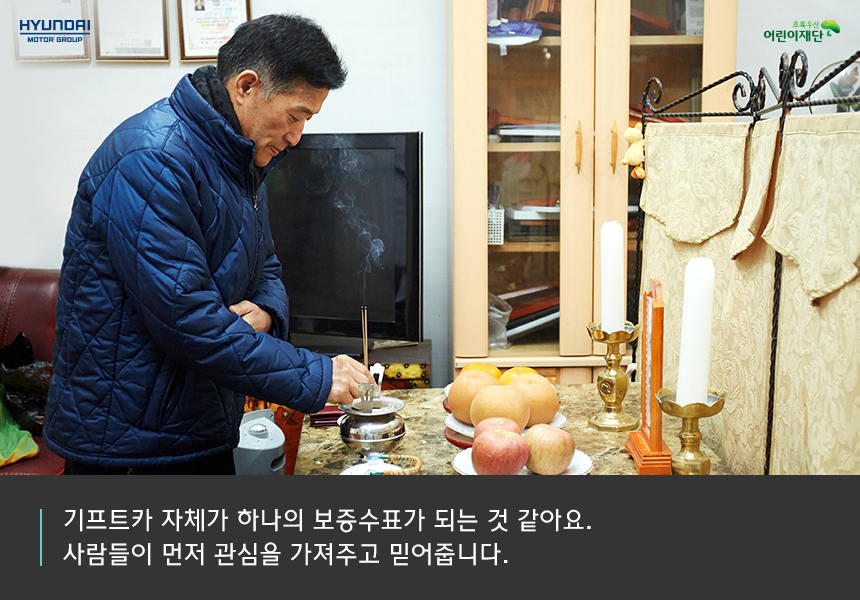 덕분에 살림이 나아지면서 가정도 화목해졌습니다. 제가 딸이 있는데, 기프트카와 함께하기 전에는 어려워서 결혼할 형편이 안 됐었어요. 지금은 많이 좋아져서 결혼도 하고, 아들과 딸에게 연락도 자주 옵니다. 일도 가정도 모두 행복해졌지요.