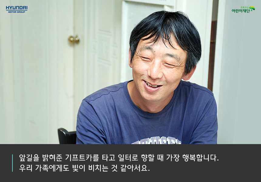 기프트카를 알아보고 놀라워하거나, 차량에 부착된 로고를 보고 궁금해하는 사람들도 있었어요. 그럴 때마다 기프트카 캠페인 홈페이지에 실린 제 인터뷰를 보여주기도 했죠. 무엇보다 우리 아들이 가장 좋아해요. 어려움이 찾아오기 전에는 아들하고 차를 타고 교외로 곧잘 놀러 나가곤 했었거든요. 한동안 그럴 엄두조차 못 내고 있다가, 기프트가 생겨서 요즘은 이따금 당일치기로 가까운 곳에 다녀오기도 한답니다.