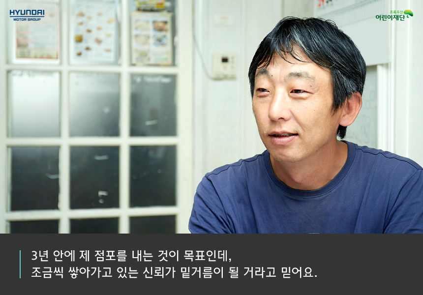 조금씩 신뢰를 쌓아가고 있어요. 기프트카 로고를 달고 현장에 나가니까 절로 생기는 신뢰도 있고, 더 많은 일을 효율적으로 할 수 있다 보니 수입도 늘었지요. 그러다 보니 빚도 차근차근 갚아나갈 수 있게 되었습니다. 밀린 아이 학원비나 방세도 낼 수 있게 되었고요. 그렇게 신뢰를 다시 찾아가고 있다는 걸 실감해요. 3년 안에 제 점포를 내는 것이 목표인데, 지금 쌓는 신뢰가 밑거름이 될 거라고 믿고 있습니다.