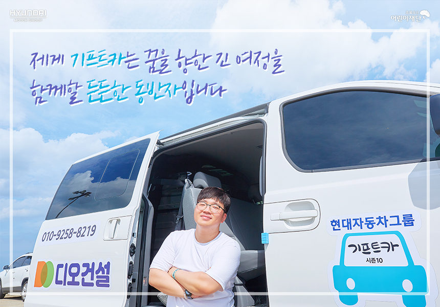 동욱 님에게 기프트카는 단순한 차량이 아니라 꿈을 향한 긴 여정을 함께할 든든한 동반자라고 합니다. 그동안 현실적인 문제로 움츠러들었던 자신에게 용기와 자신감을 불어넣어 준 고마운 존재라고 하는데요. 동욱 님은 기프트카와 함께라면 무엇이든 해낼 수 있을 것 같다며 환하게 웃어 보였습니다. 반짝이는 미래를 향해 한 걸음씩 나아가고 있는 동욱 님에게 진심 어린 응원을 보냅니다!