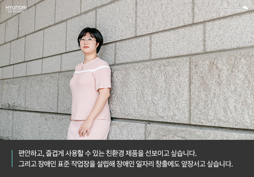 그리고 사업이 어느 정도 자리를 잡으면 장애인 표준 작업장을 설립하는 목표도 갖고 있습니다. 이를 통해 장애인들에게 안정적인 일자리를 제공하고, 복리후생 향상을 위해 앞장서고 싶습니다.
